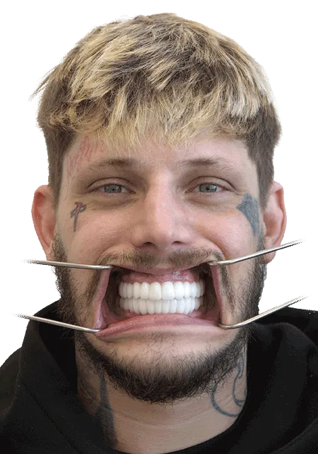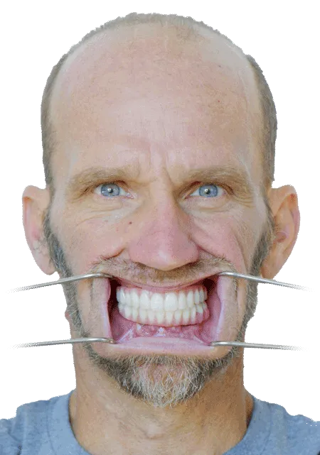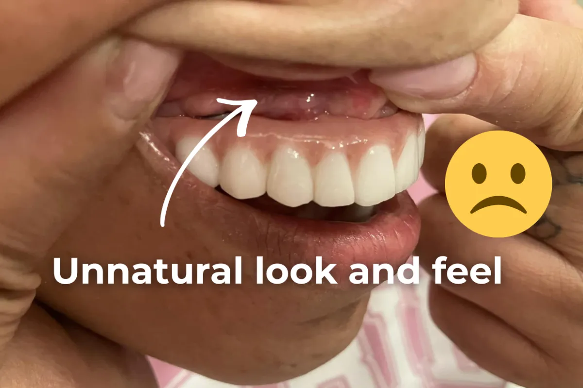 If you pull back the lips, people will see the artificial gums that have replaced where your real gums used to be.