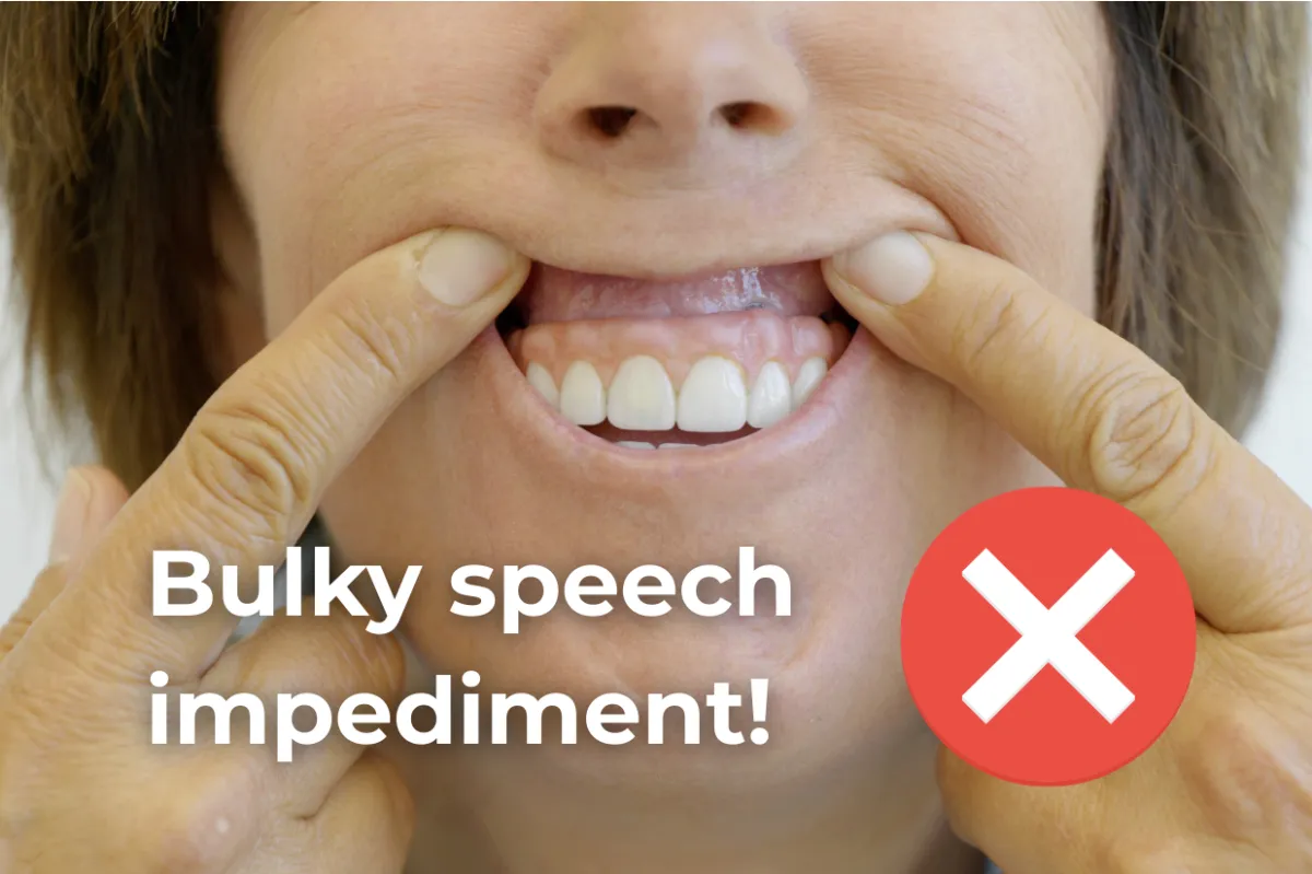 The bulky prosthetic feels unnatural in the mouth and can cause slurring and other issues while speaking.
