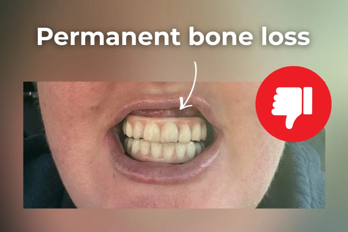 During surgery, the dentist removes bone and gum tissue to make space for the bulky prosthetic. This damage is irreversible.